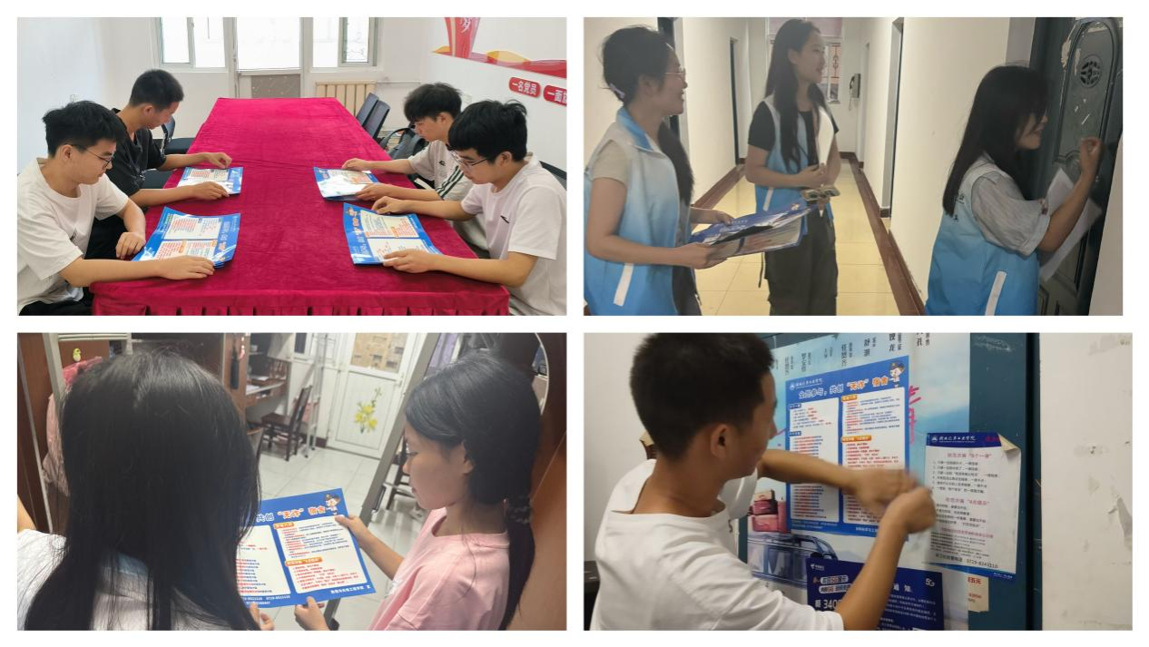 在交流宣传过程中,学生干部重点宣传了防诈反诈知识,提醒新生们警惕各种诈骗手段,尤其是迎新期间校园中出现的推销现象,保护好自己的财产安全,并和新生一起在宿舍张贴防诈宣传标语。