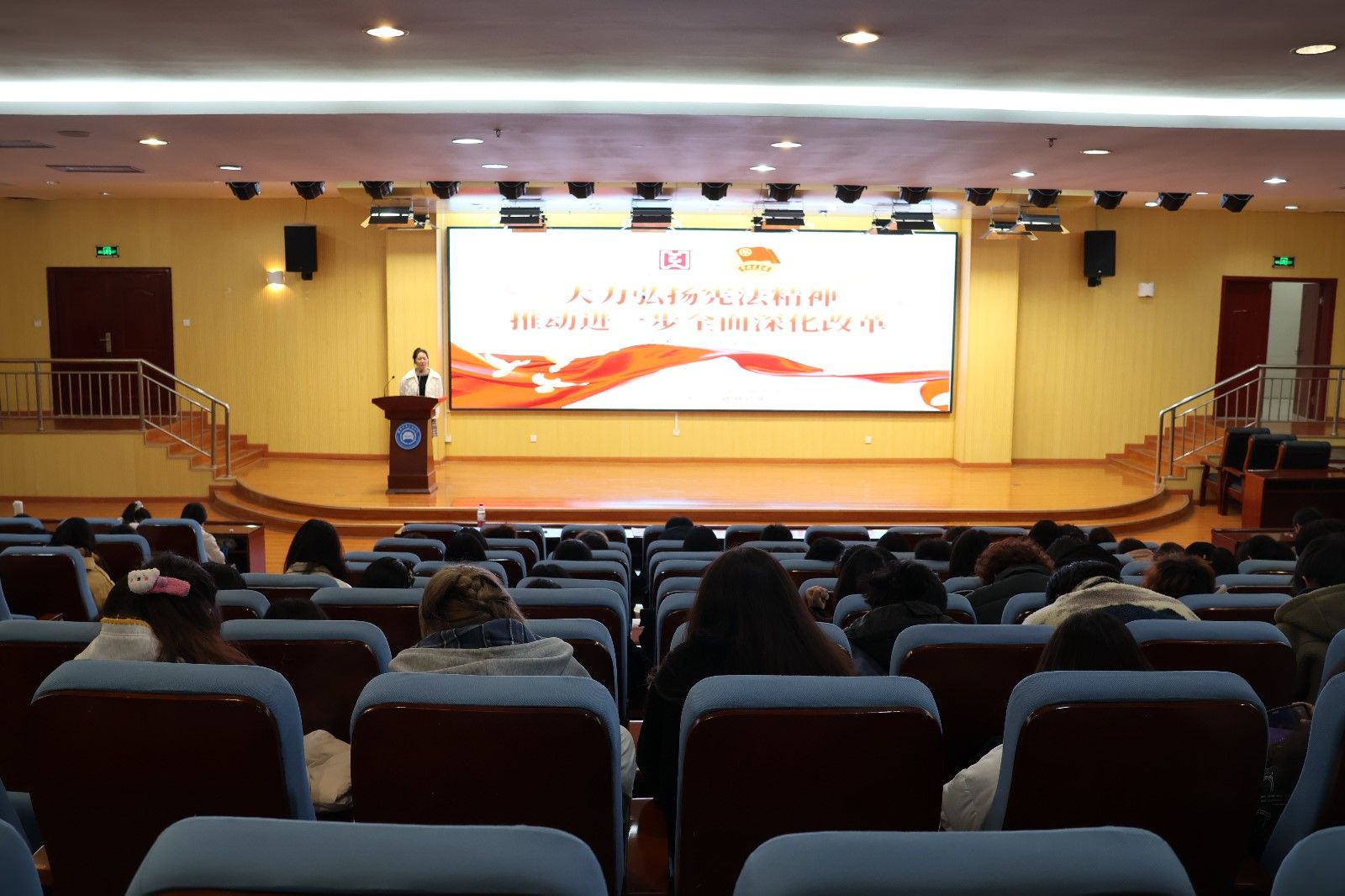 本网讯(文/图 郭慧)12月4日,艺术与设计学院在图书馆报告厅举行普法宣传教育活动。旨在提升学生们对宪法知识的了解,做社会主义法治的忠实崇尚者、自觉遵守者、坚定捍卫者。