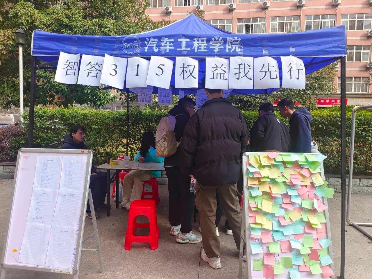 本网讯(文 喻言、曹闪闪/图 张佳麒)为提升学生们的消费维权意识,营造安全和谐的校园消费环境,3月15日,汽车工程学院在桃园广场举办“智答315,权益我先行”主题活动。
