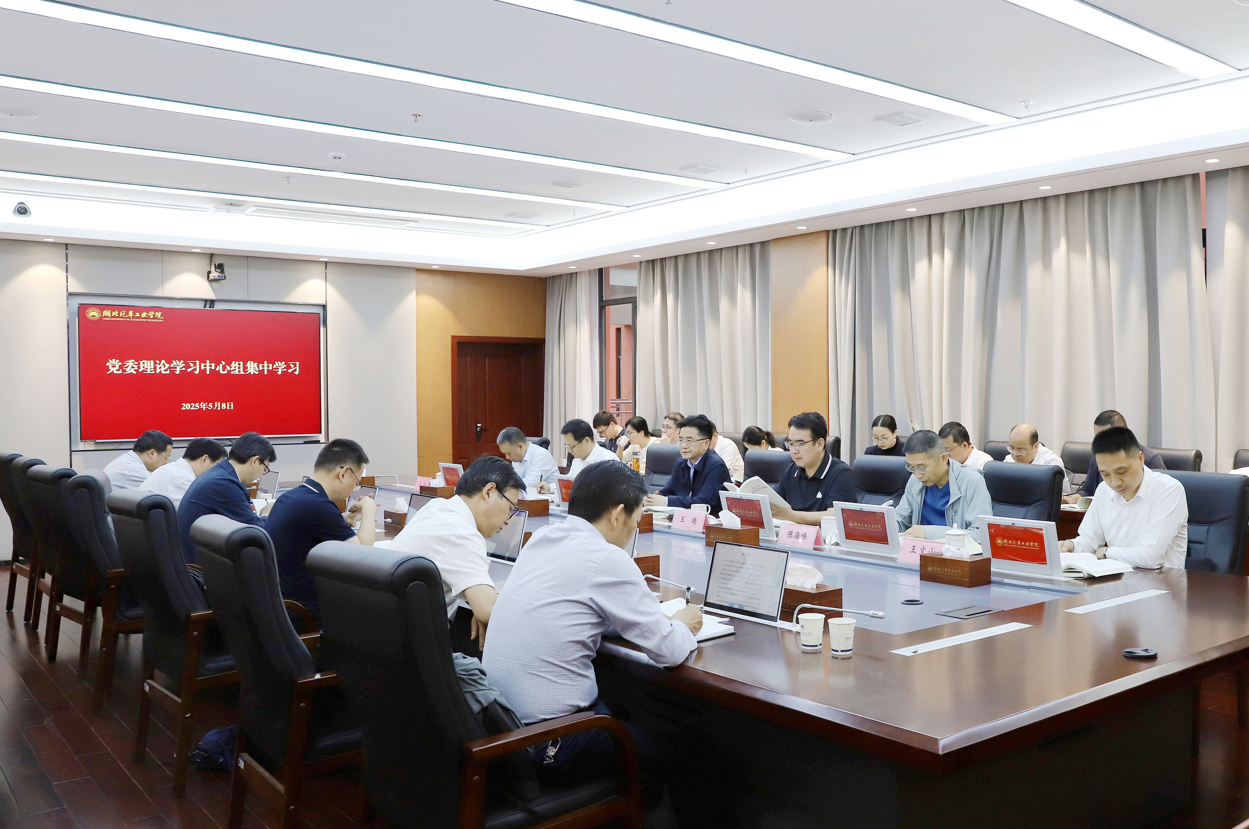 本网讯(文 刘俊/图 广娟)5月8日上午,校党委理论学习中心组在产教大楼三楼多功能会议室举行2025年第七次集中学习会。会议由党委书记张文学主持,全体在家校领导,校党委委员、纪委委员,党群部门主要负责人、二级党组织书记、教务处负责人等参加学习。